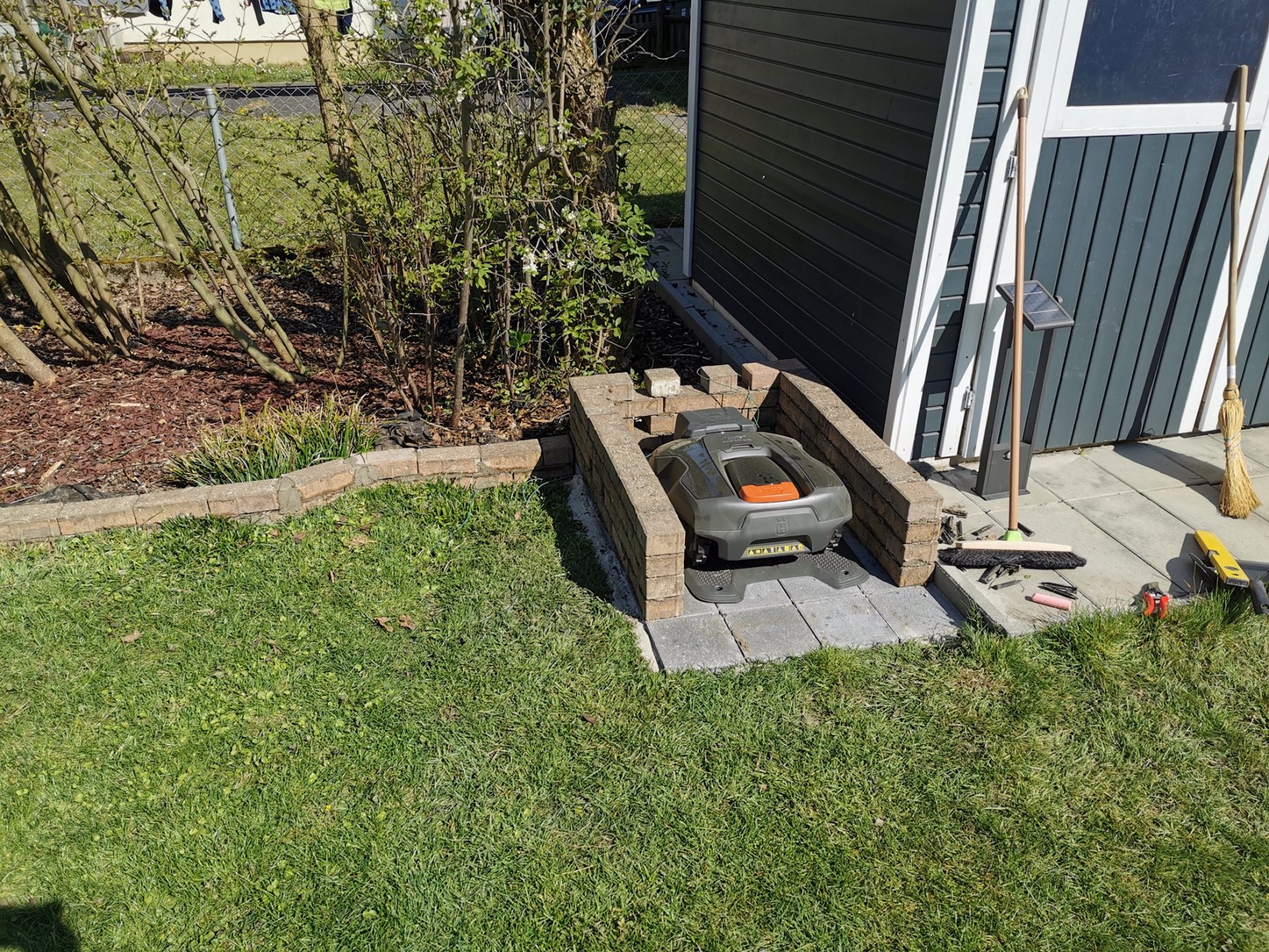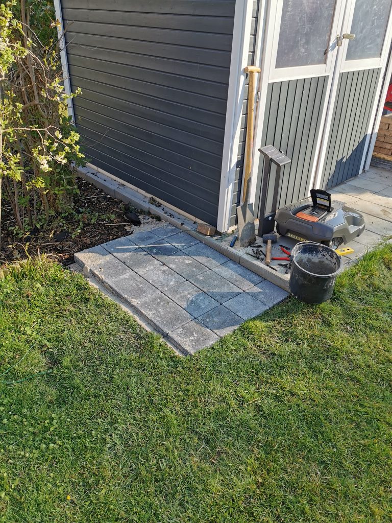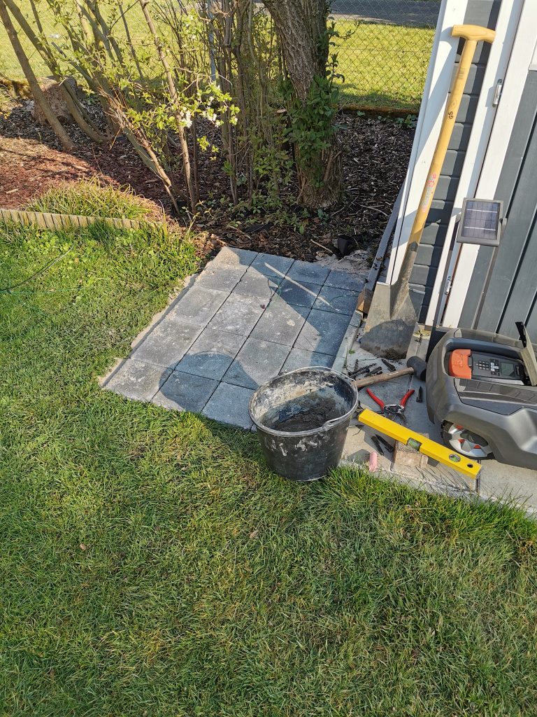 teil 4 In lebensalltag weiter gehts, rasen-röbi garagenplatz, rasen-trenn-kannte, und einfassung planzbeet 7. 04. 2020
